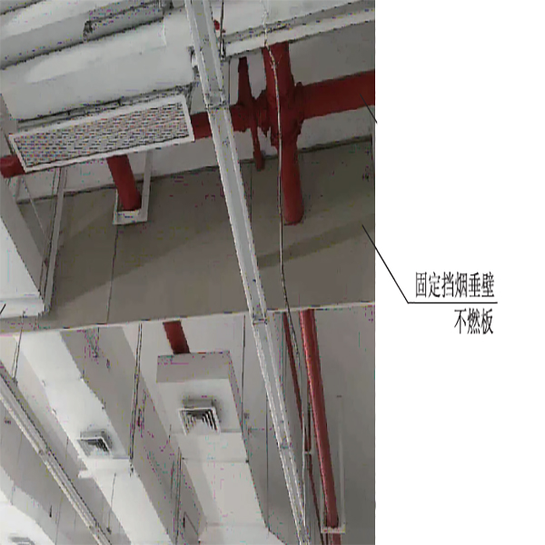 1. 《擋煙垂壁》31條:用不燃材料制成,垂直安裝在建筑3~頂棚+橫梁+或吊頂下,能在火災(zāi)時形成一定的蓄煙空間的擋煙分隔設(shè)施。設(shè)置防煙分區(qū)使用。