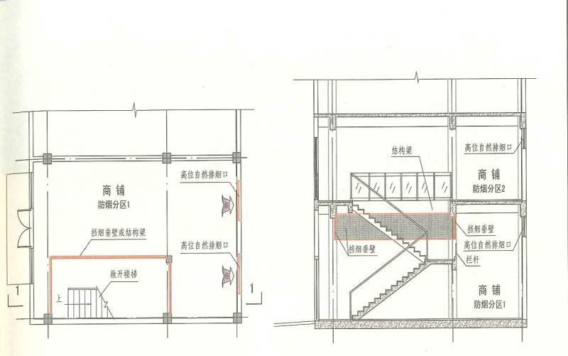 當然了,實際工程中將《煙規(guī)》第4.2.3的“敞開樓梯”擴大解釋了,條文也包含了對敞開樓梯間的要求。認為敞開樓梯間滿足一定條件也需要設擋煙垂壁。