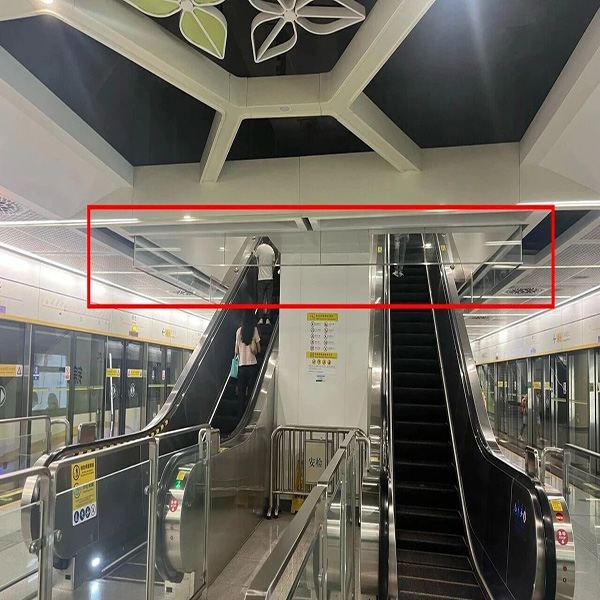 自動扶梯穿越樓板的開口部位設置擋煙垂壁。