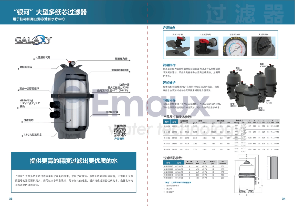 “銀河”大型多芯紙芯過濾器采用了最新的技術(shù),使用了耐腐蝕、防紫外線更耐用的材料,比市場上大多數(shù)型號的濾芯面積更大。采用缸內(nèi)多紙芯設(shè)計(jì),能夠加大處理量,提高精度過濾更優(yōu)質(zhì)的水,是住宅和商業(yè)游泳池的理想選擇。
