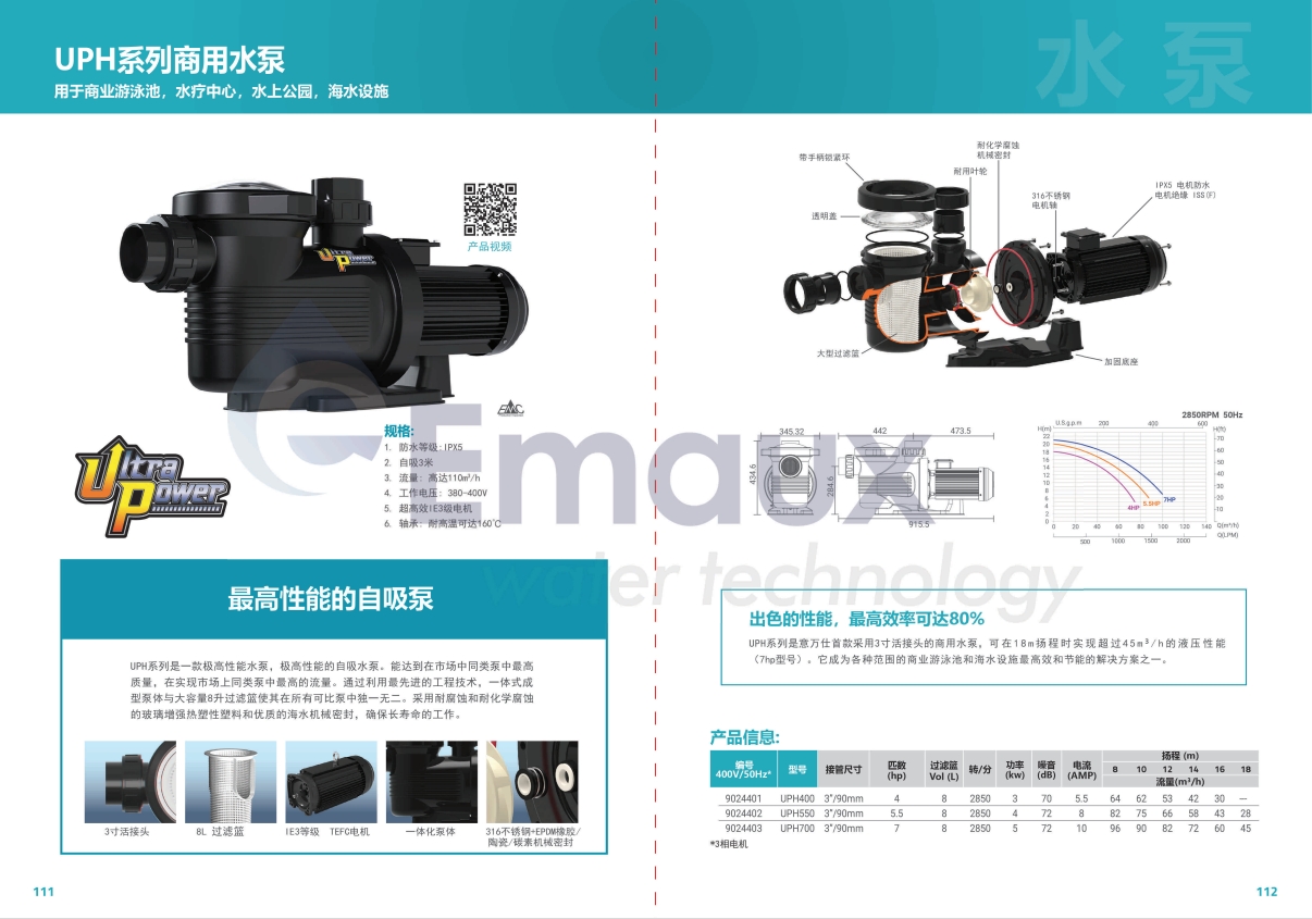 UPH系列是一款極高性能水泵,極高性能的自吸水泵。能達(dá)到在市場中同類泵中最高質(zhì)量,在實現(xiàn)市場上同類泵中最高的流量。通過利用最先進的工程技術(shù),一體式成型泵體與大容量8升過濾籃使其在所有可比泵中獨一無二。采用耐腐蝕和耐化學(xué)腐蝕的玻璃增強熱塑性塑料和優(yōu)質(zhì)的海水機械密封,確保長壽命的工作。