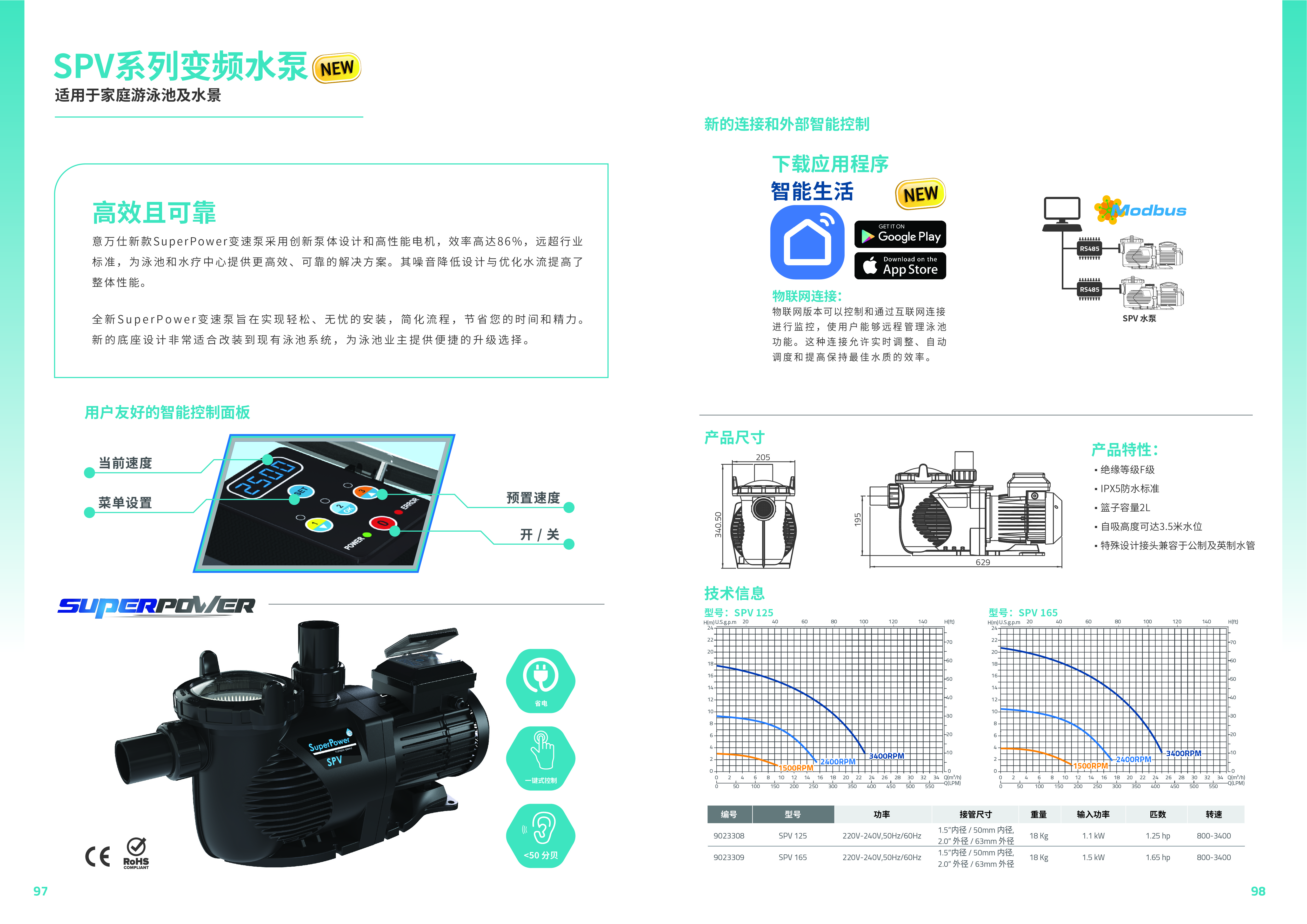意萬仕新款SuperPower變速泵采用創(chuàng)新泵體設(shè)計(jì)和高性能電機(jī),效率高達(dá)86%,遠(yuǎn)超行業(yè) 標(biāo)準(zhǔn),為泳池和水療中心提供更高效、可靠的解決方案。其噪音降低設(shè)計(jì)與優(yōu)化水流提高了 整體性能。 全新SuperPower變速泵旨在實(shí)現(xiàn)輕松、無憂的安裝,簡化流程,節(jié)省您的時(shí)間和精力。 新的底座設(shè)計(jì)非常適合改裝到現(xiàn)有泳池系統(tǒng),為泳池業(yè)主提供便捷的升級選擇。