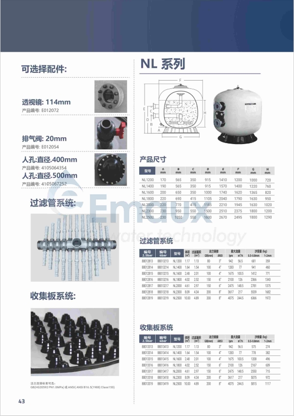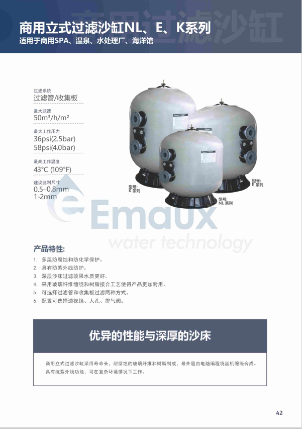 | EMAUX - "NL" SERIES FIBERGLASS SAND FILTERS |