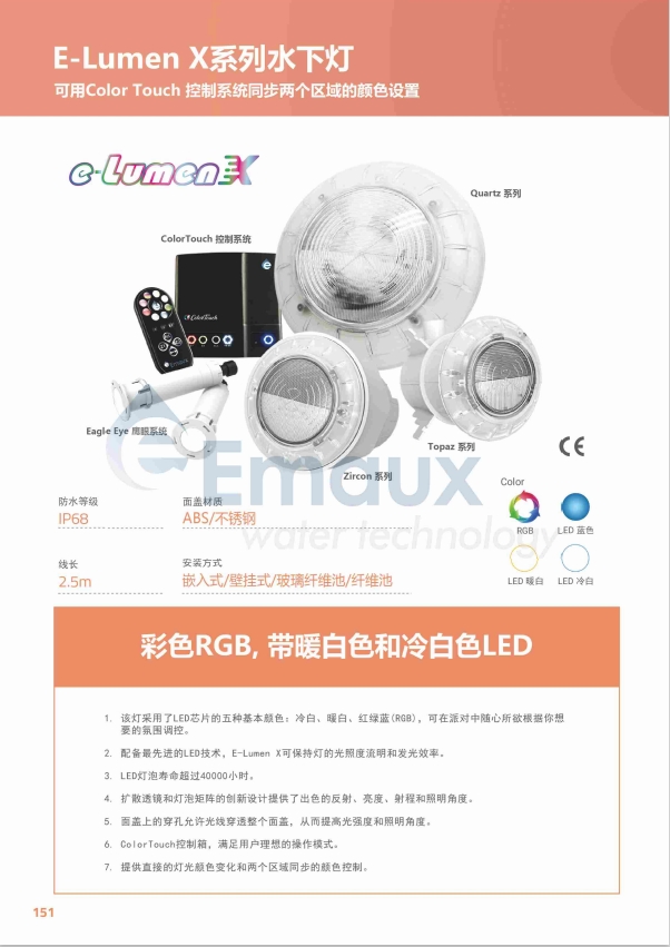 1. 該燈采用了LED芯片的五種基本顏色:冷白、暖白、紅綠藍(lán)(RGB), 可在派對中隨心所欲根據(jù)你想要的氛圍調(diào)控。 2. 配備最先進(jìn)的LED技術(shù),E-Lumen X可保持燈的光照度流明和發(fā)光效率。 3. LED燈泡壽命超過40000小時。 4. 擴(kuò)散透鏡和燈泡矩陣的創(chuàng)新設(shè)計提供了出色的反射、亮度、射程和照明角度。 5. 面蓋上的穿孔允許光線穿透整個面蓋,從而提高光強(qiáng)度和照明角度。 6. ColorTouch控制箱,滿足用戶理想的操作模式。