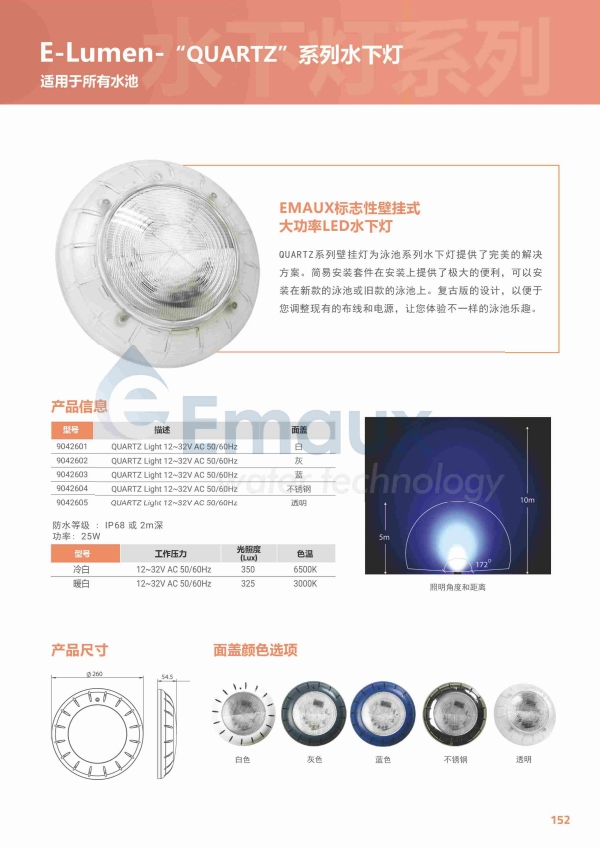 競(jìng)技池QUARTZ系列壁掛燈為泳池系列水下燈提供了完美的解決方案。簡(jiǎn)易安裝套件在安裝上提供了極大的便利,可以安裝在新的泳池或原有的泳池上。復(fù)古版的設(shè)計(jì),以便于您調(diào)整現(xiàn)有的布線和電源,讓您體驗(yàn)不一樣的泳池樂(lè)趣。