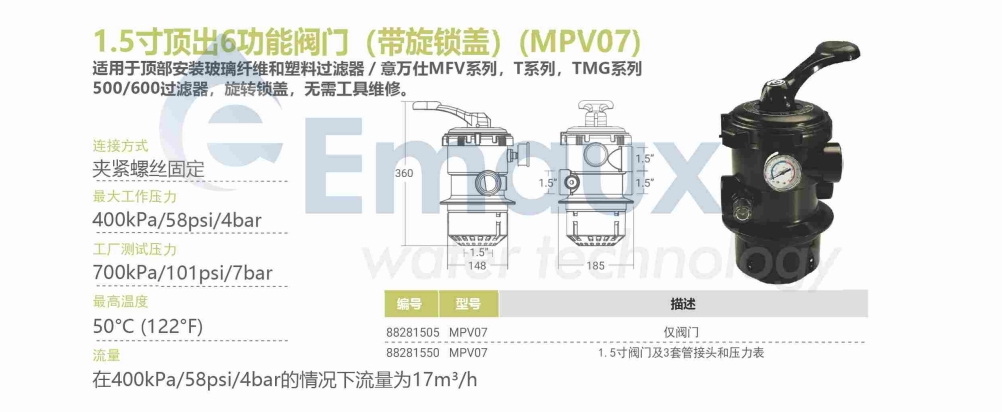 | EMAUX - 1.5" Clamp Type Multiport Valve for Filter Max | |||