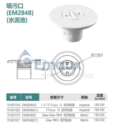 您的位置:首頁>產(chǎn)品概覽>吸污口配件>吸污口 (EM2848) (水泥池)