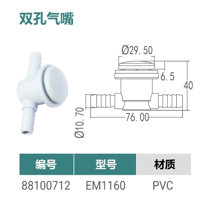 您的位置:首頁(yè)>產(chǎn)品概覽>SPA配件>雙孔氣嘴