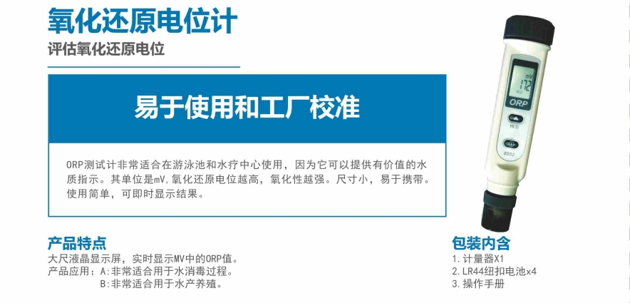 競(jìng)技池ORP測(cè)試計(jì)非常適合在游泳池和水療中心使用,因?yàn)樗梢蕴峁┯袃r(jià)值的水質(zhì)指示。其單位是mV,氧化還原電位越高,氧化性越強(qiáng)。尺寸小,易于攜帶。使用簡(jiǎn)單,可即時(shí)顯示結(jié)果。